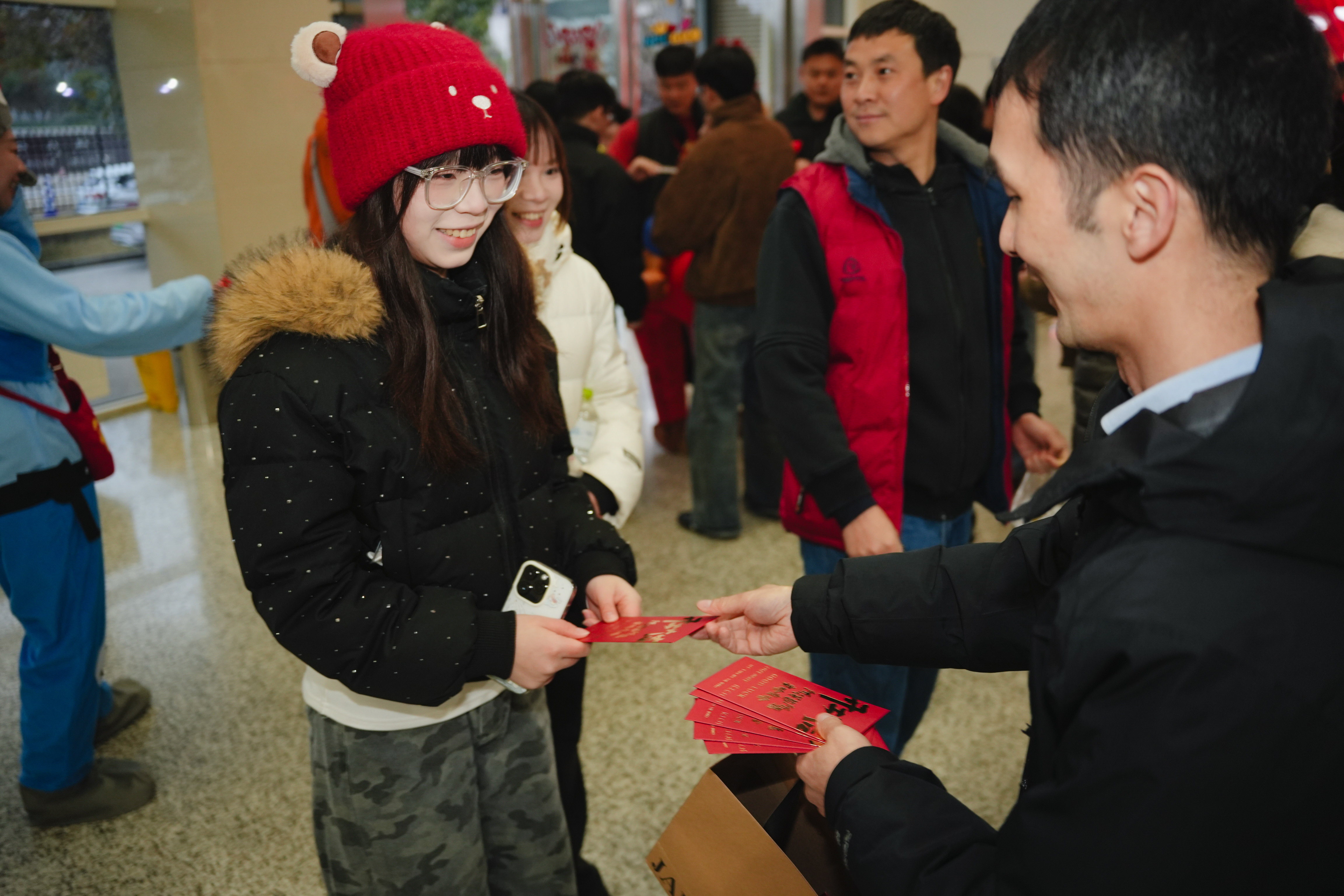 副总经理吴雪峰为每一位返岗员工送上开工红包与真挚新年祝福,一句句暖心问候让现场洋溢着团圆与奋进的气息。